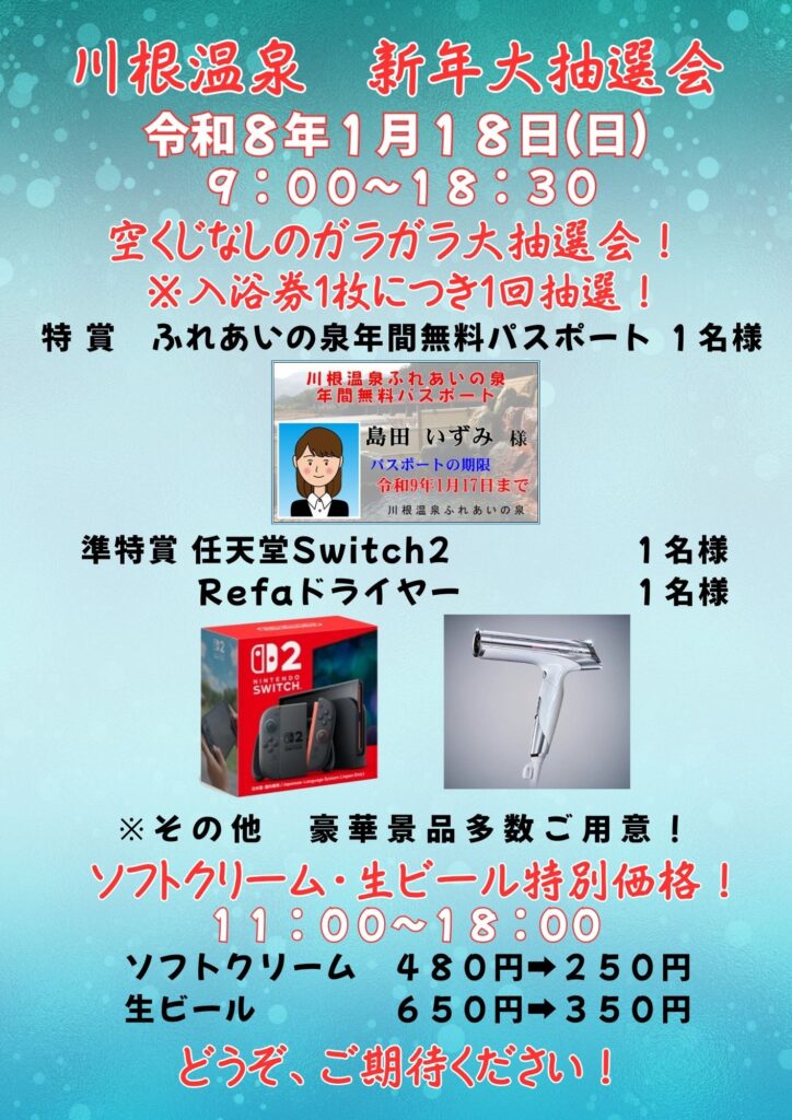 入浴券1枚につき1回抽選出来ます。特賞はなんと・・・・